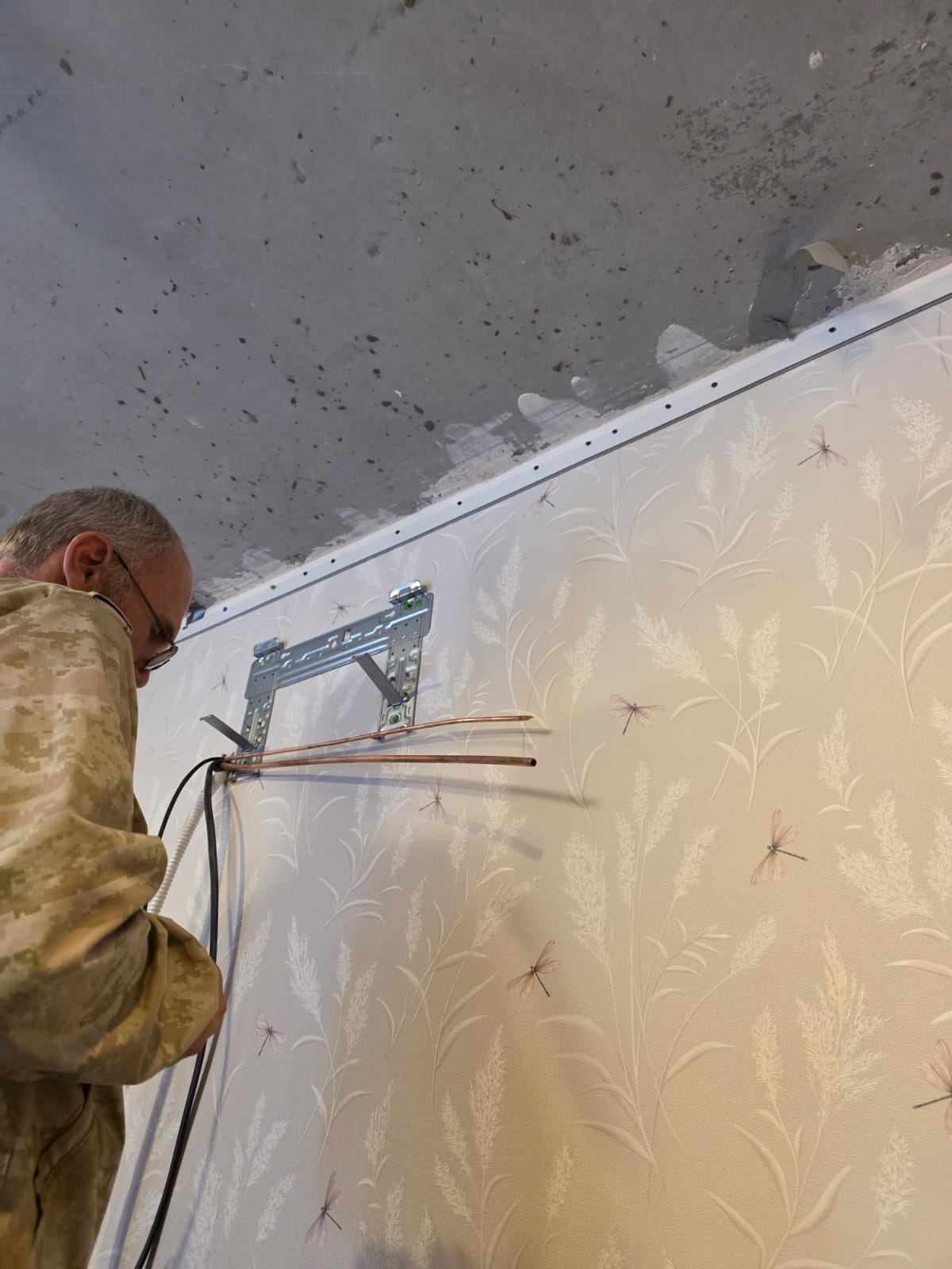 • Прокладка трасс и кабелей. Через отверстия были выведены фреоновые трубы, дренажный шланг и кабели управления, подготовленные для подключения к внешним блокам.
