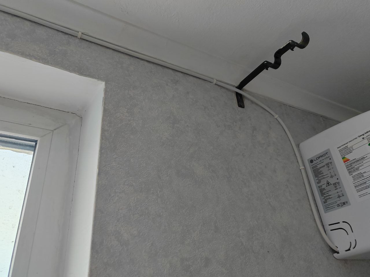 Финальным и наиболее наглядным этапом стал запуск кондиционера в режиме обогрева. Инверторная модель Loriot LAC IN‑12TA, обладающая функцией эффективного теплопроизводства при температурах наружного воздуха до -15°C, немедленно вышла на расчетную мощность и начала подачу стабильного потока теплого воздуха, что стало окончательным подтверждением корректности проведенной установки и готовности системы к круглогодичной эксплуатации в условиях сибирского климата.